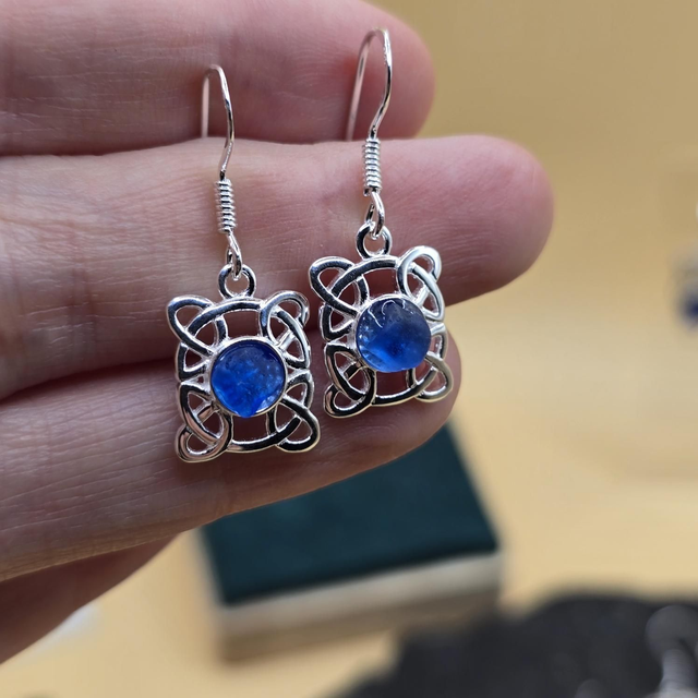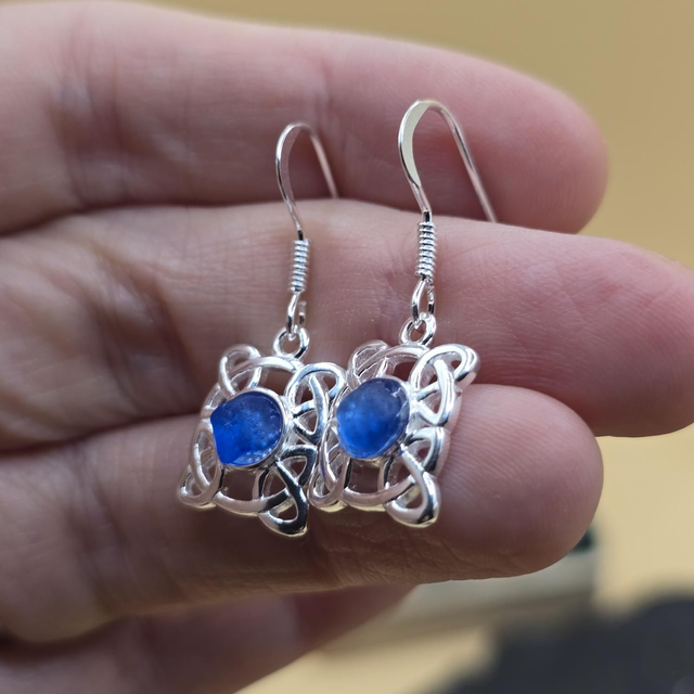 925 Drop Earrings with Seaglass – Celtic Rectangle Design