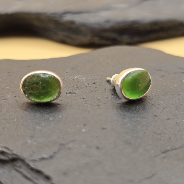 925 Studs Small Seaglass Ovals